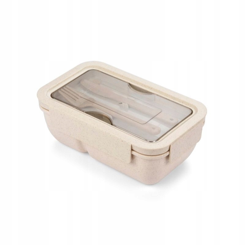 Состоит из двух камер – большей и меньшей, ручки для удобной переноски ложки и вилки. Контейнер пригоден для использования в микроволновых печах и посудомоечной машине. Минималистичный дизайн и классическая форма порадуют каждого пользователя. Ланч-бокс можно брать с собой на работу, в школу - куда угодно!