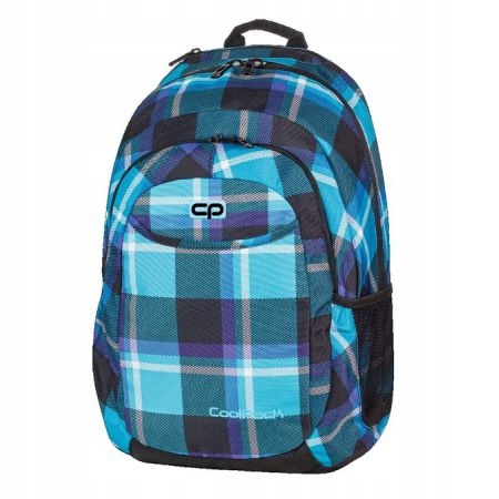 Идеальный вариант для молодежи. Рюкзак большой, поэтому в него поместится все необходимое для школы и путешествий. Синяя клетка с белыми, фиолетовыми и черными элементами.