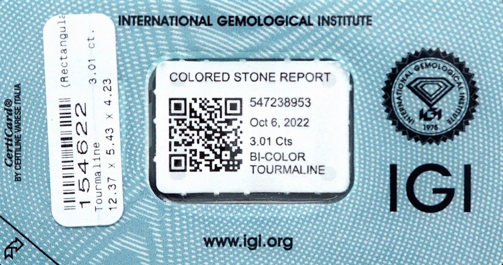 Двоколірний кавуновий турмалін 3.01ct сертифікат IGI