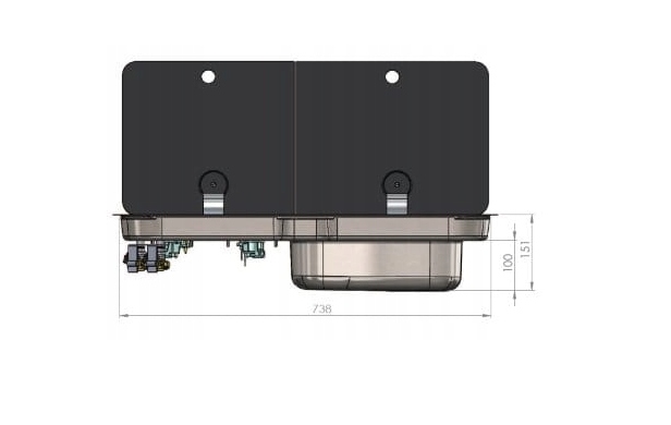 Двойная разделенная крышка из черного закаленного стекла со скрытыми петлями и антивибрационными накладками