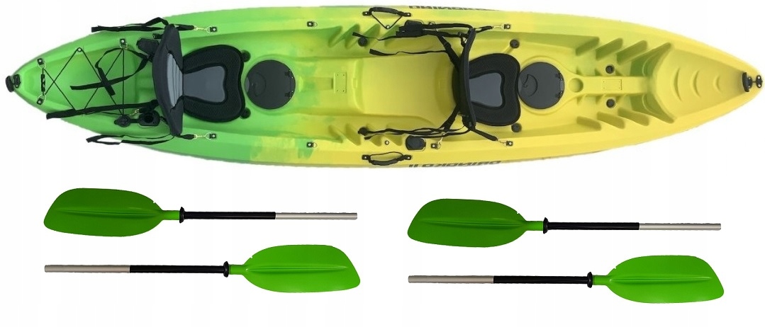 Каяк оснащен четырьмя внутренними держателями для удочек, благодаря этим держателям и высокой устойчивости Orinoco II можно использовать для рыбалки. В днище каяка имеются 8 дренажных отверстий (с заглушками в комплекте), обеспечивающих безопасность при катании на волне. Этот тандем имеет два герметично закрывающихся 8-дюймовых багажных люка, ручки для переноски: два на корме, носу и две по бокам каяка. Боковые ручки имеют так называемые «Вёселый парк» — место для крепления весла. Кроме того, в каяке рыболовы найдут два специальных места для установки внешних держателей удилищ или держателей эхолота. Каяк оснащен двумя спинками класса Люкс. Orinoko II — устойчивый и безопасный каяк для отдыха и рыбалки на реках, озерах и прибрежных морских водах.