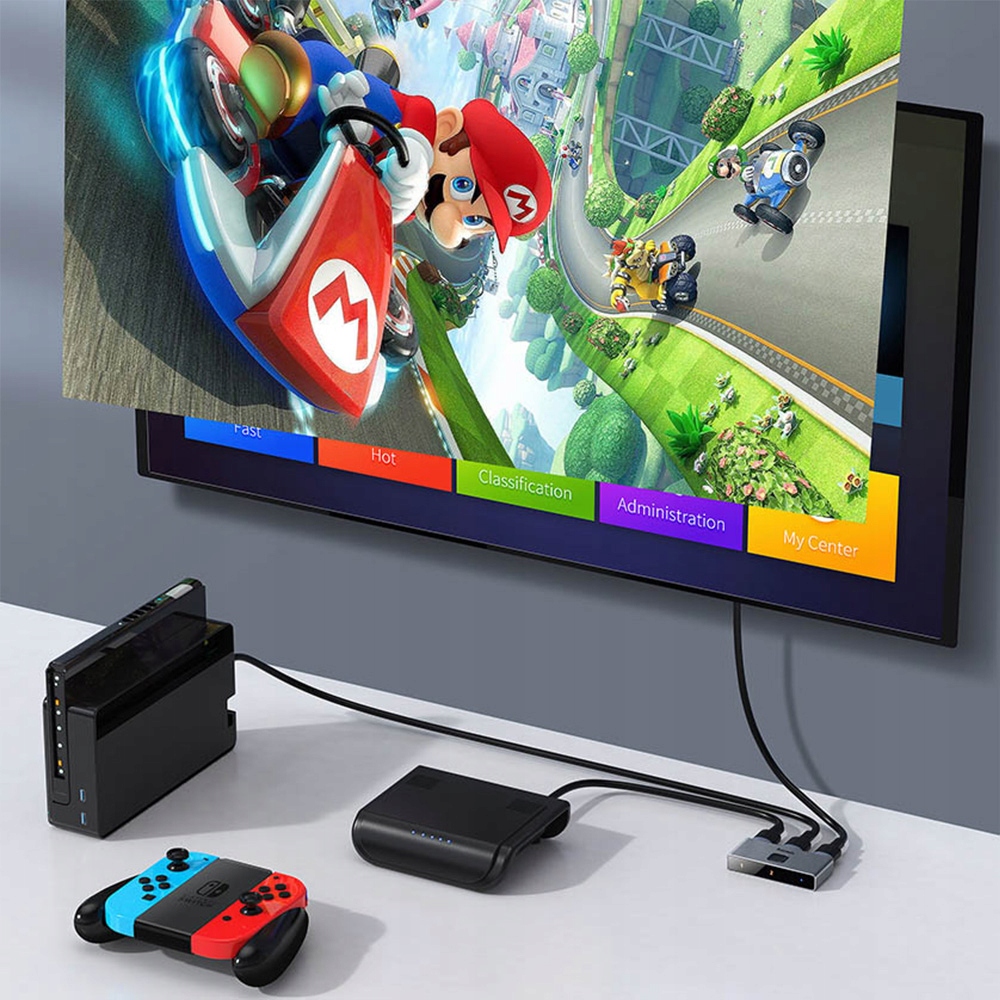 Забудьте о постоянной смене кабелей. Благодаря разветвителю Baseus вы можете подключить два передатчика HDMI и одной кнопкой выбрать, с какого из них вы хотите получать изображение. Идеальное решение для подключения декодера и приставки к телевизору.