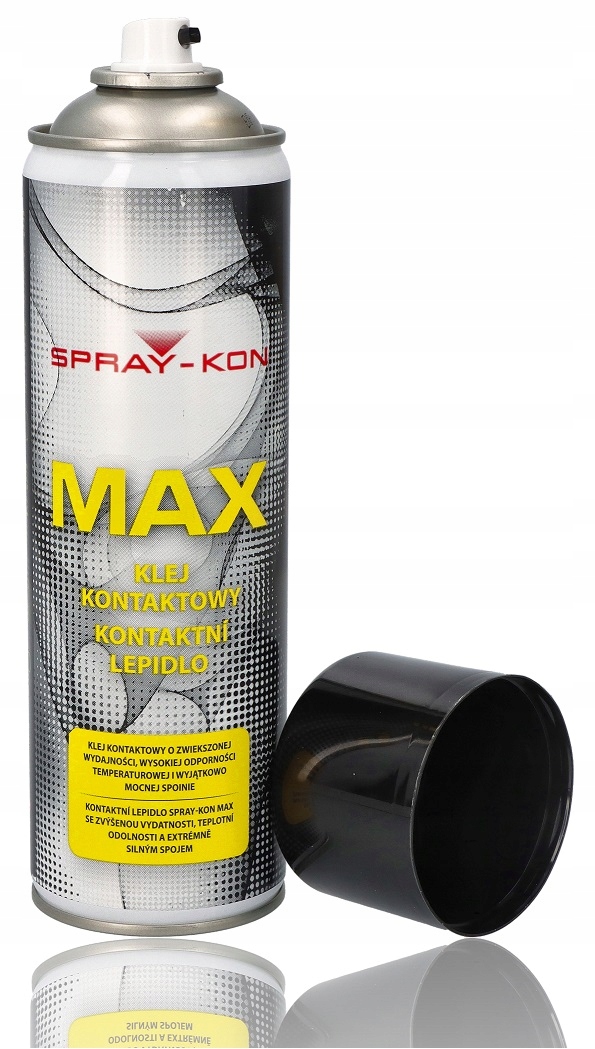 SPRAY-KON MAX — контактный клей с повышенной эффективностью, устойчивостью к высоким температурам и исключительно прочным соединением. Прекрасно склеивает: ламинаты HPL, кромки, шпон, мебельные плиты (ДСП, МДФ, ХДФ, меламин), стекло, зеркала, ковры, резину, пробку, листовой металл (в том числе свинец), пластики (ПВХ, АБС, УПП) и др.