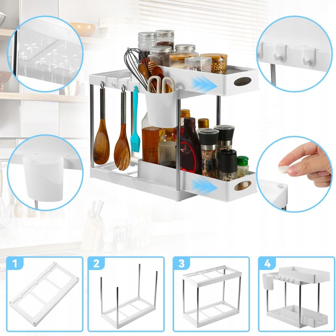 Организатор для раковины с выдвижными ящиками -это двухслойная структура, которая обеспечивает эффективное использование пространства в шкафу, что облегчает доступ к хранящимся предметам