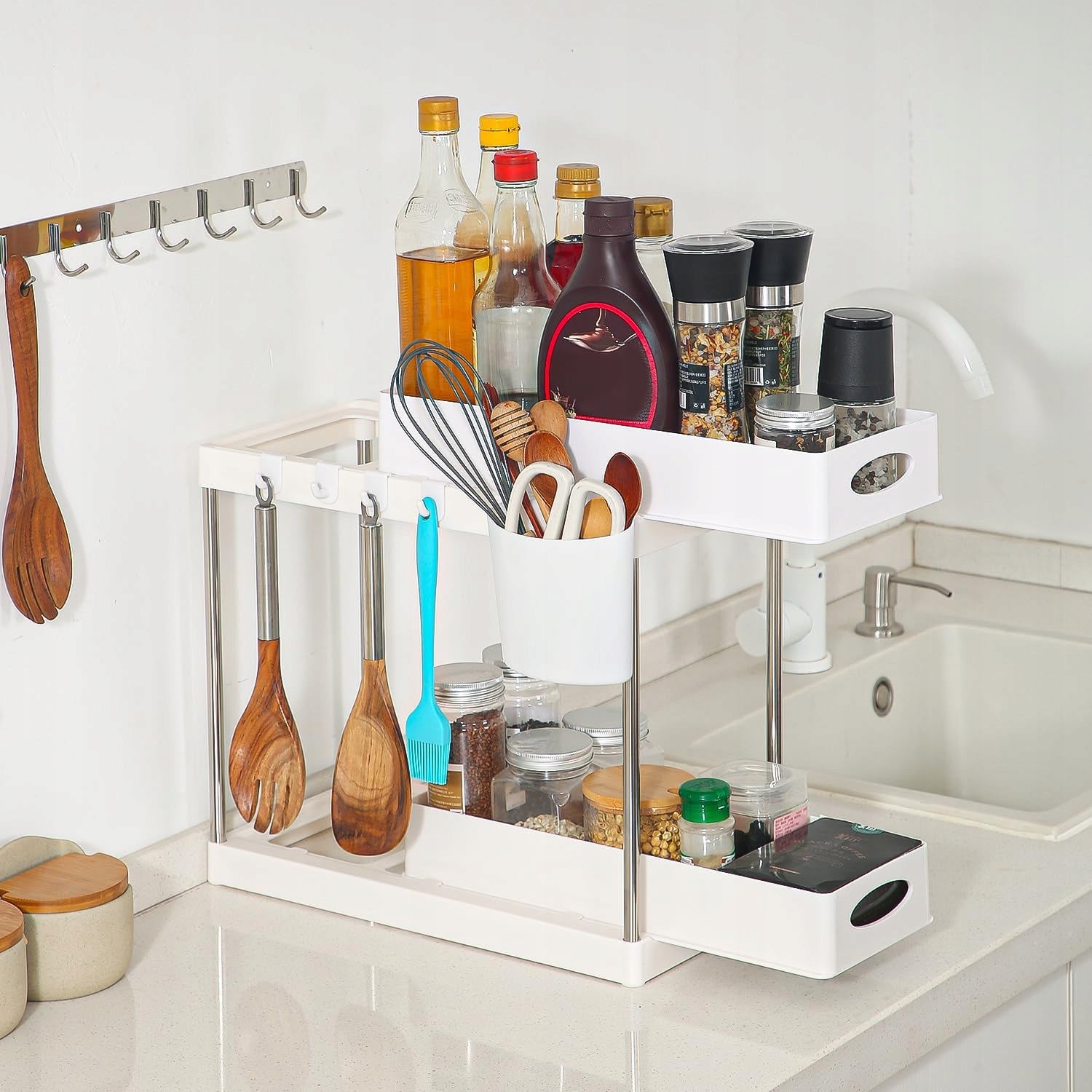Двухверовой выдвижной организатор под раковиной кухонной раковины ванной комнаты