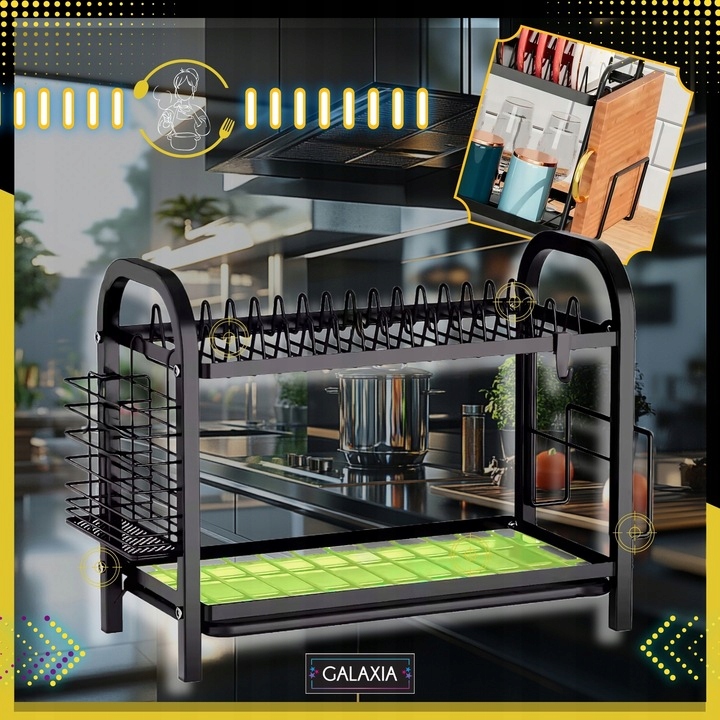Двухвелевая сушилка для посуды с капельным подносом и организатором для столовых приборов и доски -черная матовая h1> ✅ 2 Уровни сушки Не -Слежих лодок ✅ ✅ ✅ Industrial Matte H2>>