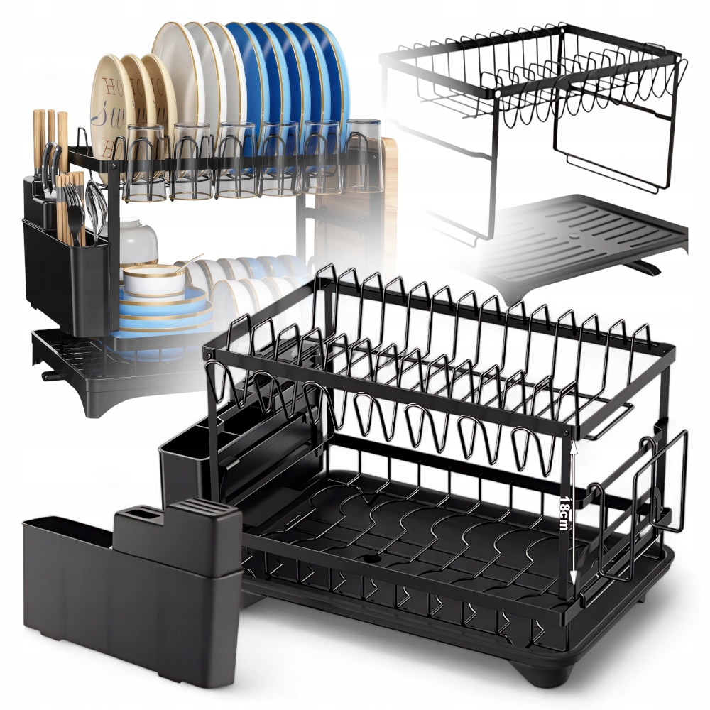 ПОДСТАВОЧНАЯ ДВУХУРОВНЕВАЯ СУШКА ДЛЯ ПОСУДЫ, БОЛЬШАЯ ЧЕРНАЯ КАПЕЛЬНИЦА ДЛЯ ПОСУДЫ РАЗМЕРА