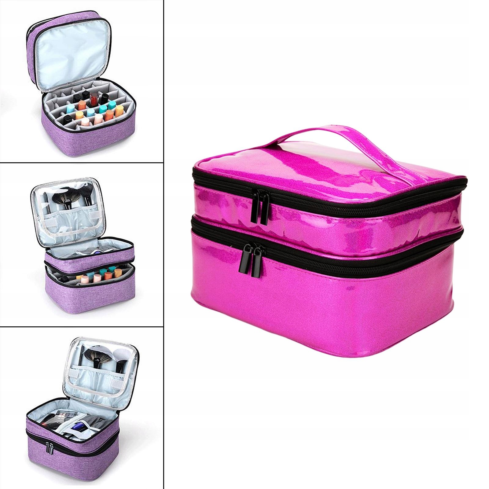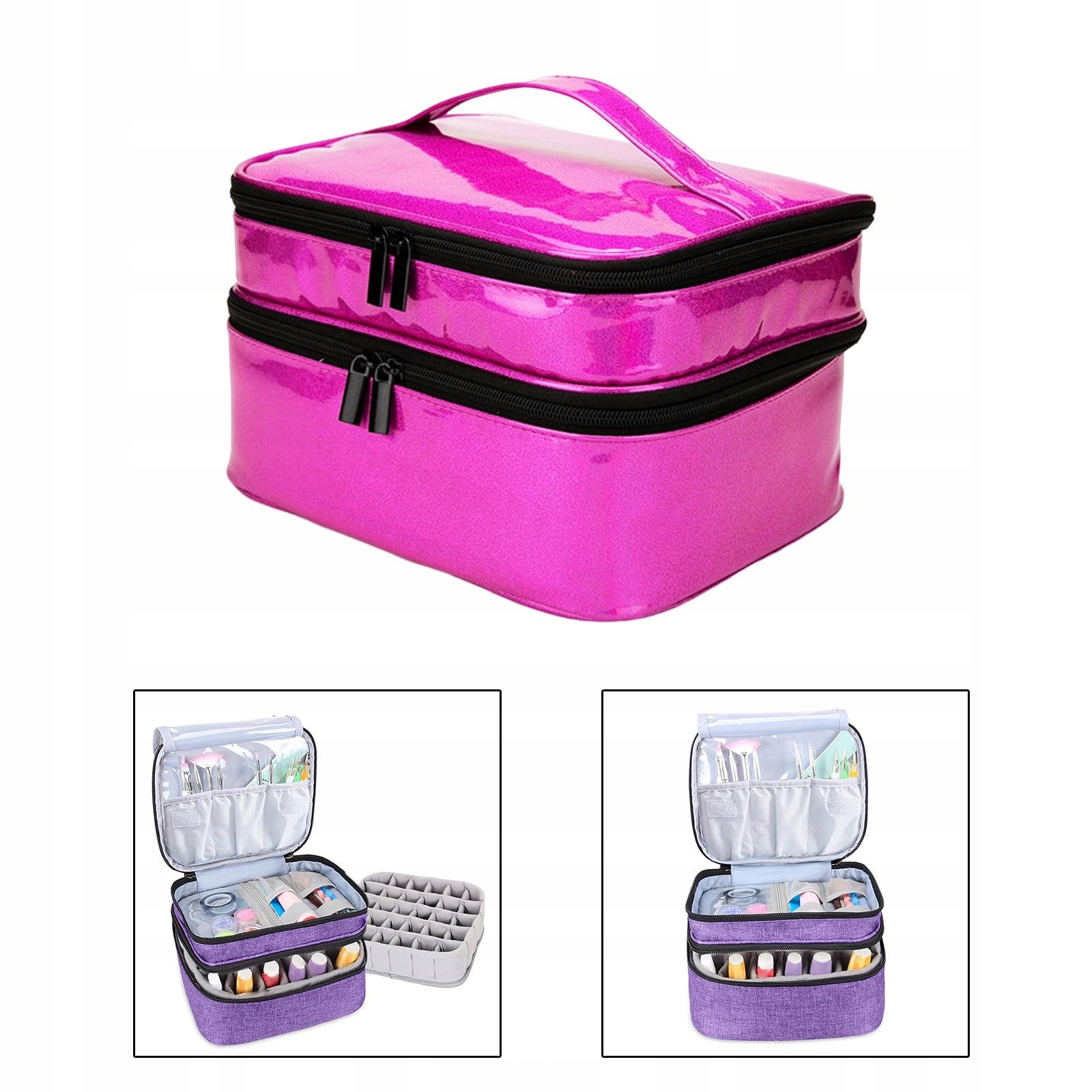 Двухслойный организатор для лака для ногтей, большой, портативной кожи PU, розово-красной