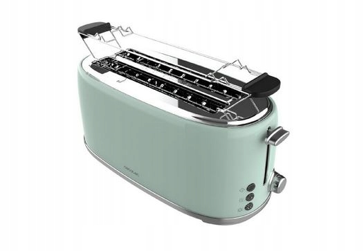 Двойной зеленый тостер CECOTEC Toast&Taste 1600 Retro благодаря центрированию ломтиков гарантирует, что хлеб будет пропекаться равномерно с обеих сторон.