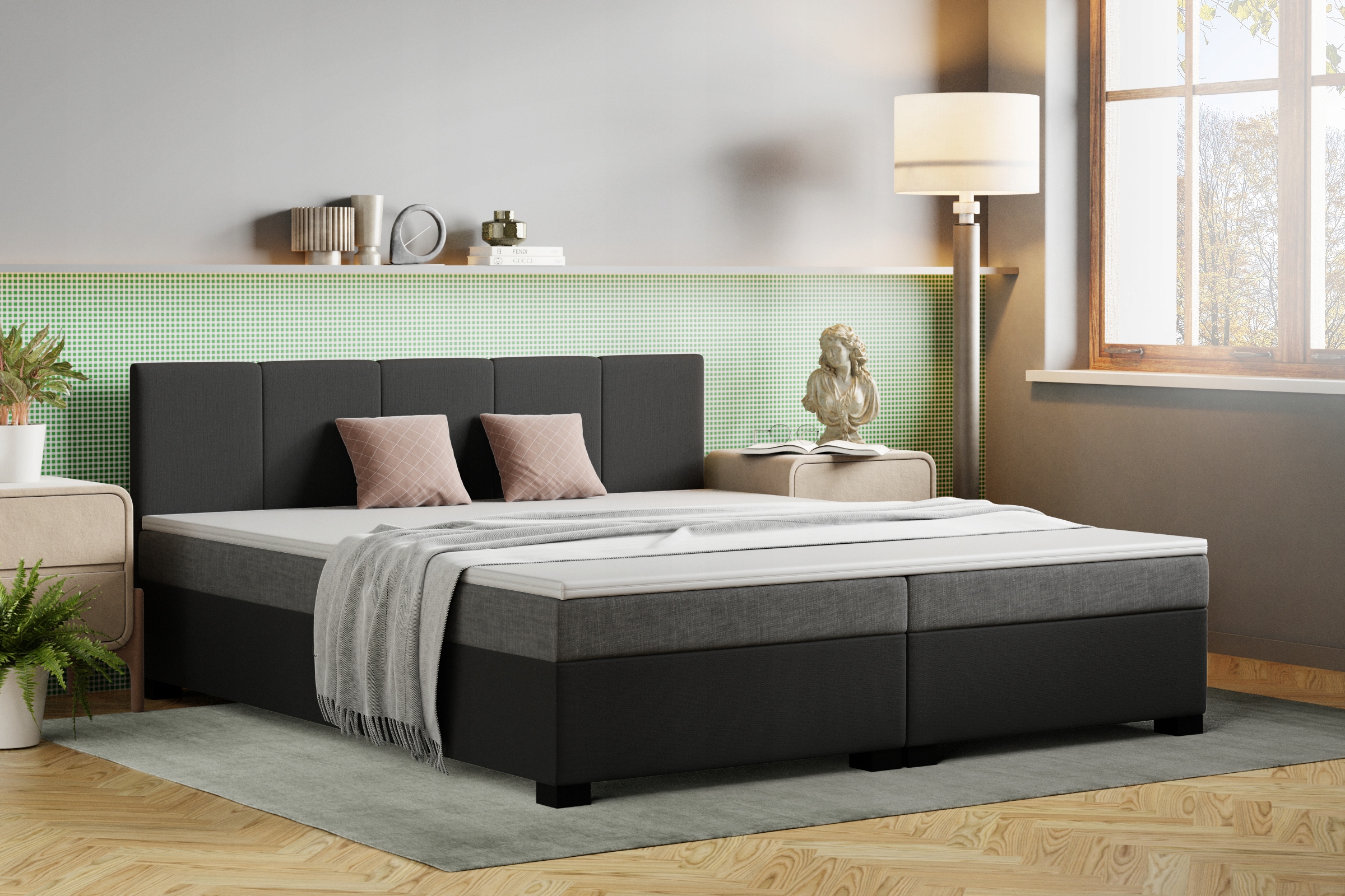 двуспальная кровать, двойной диван с контейнером Emma и панелью
