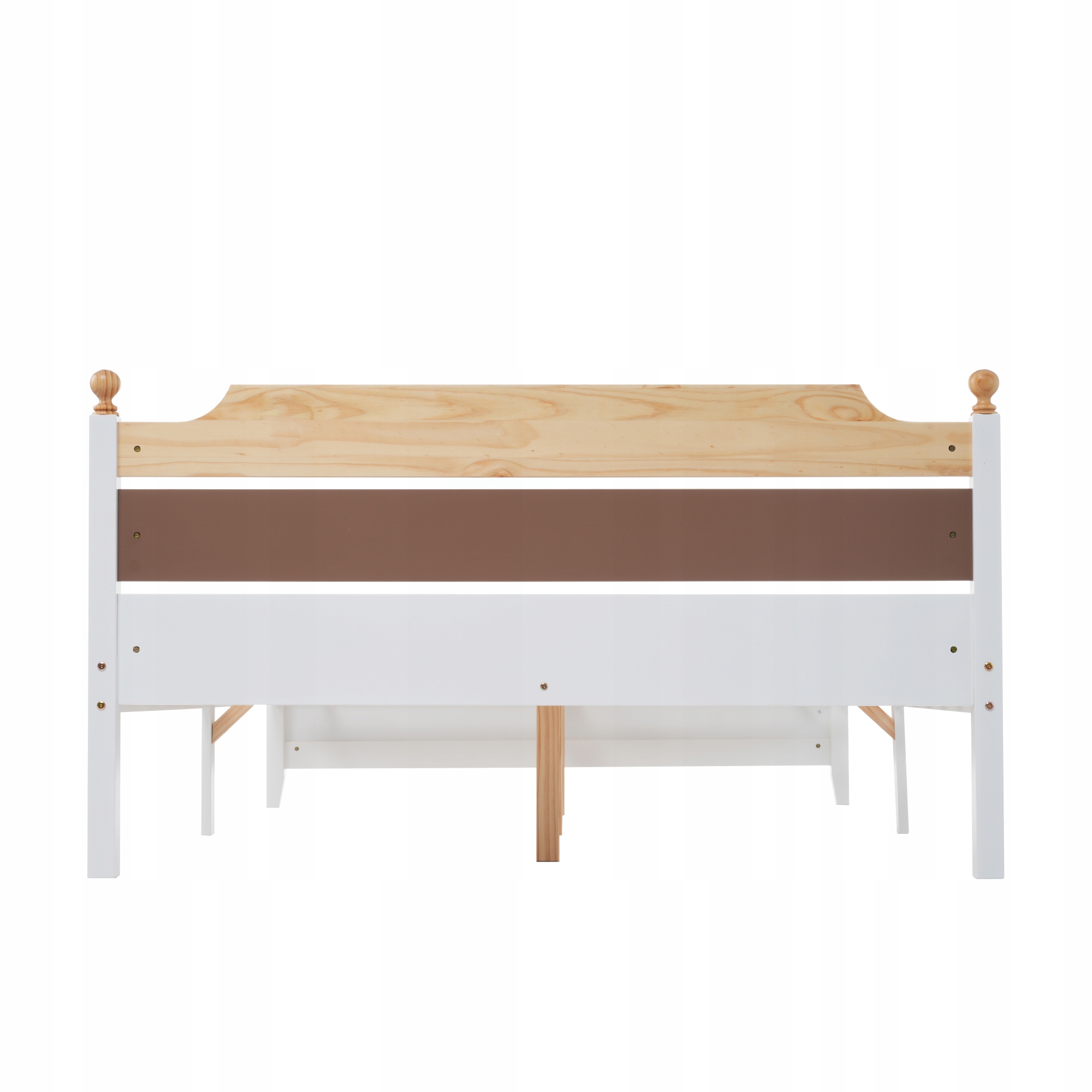 Кровать с контрастным дизайном: белый, натуральный и коричневый носитель. Гармоничное сочетание цветов и материалов.