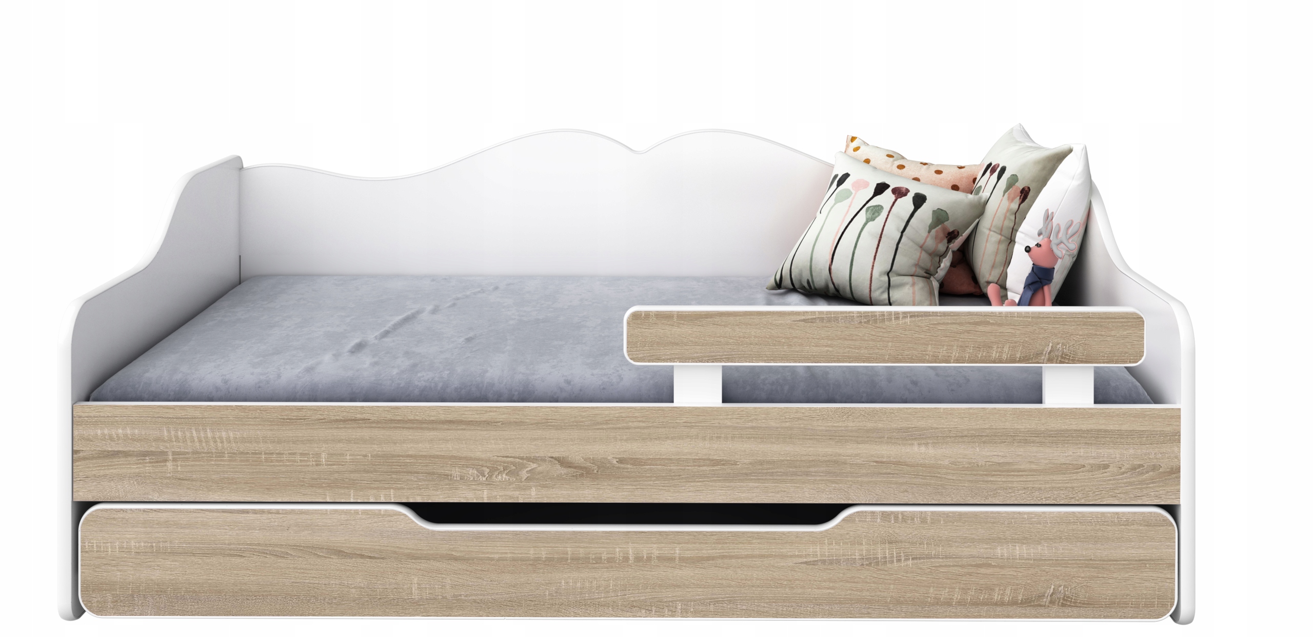 В кровати имеется ящик с матрасом, который служит вторым спальным местом. Этот комплект идеально подходит для братьев и сестер или друзей, приглашенных на ночь.