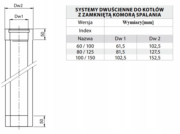 Конденсационная труба диаметром 60/100 мм с прокладкой