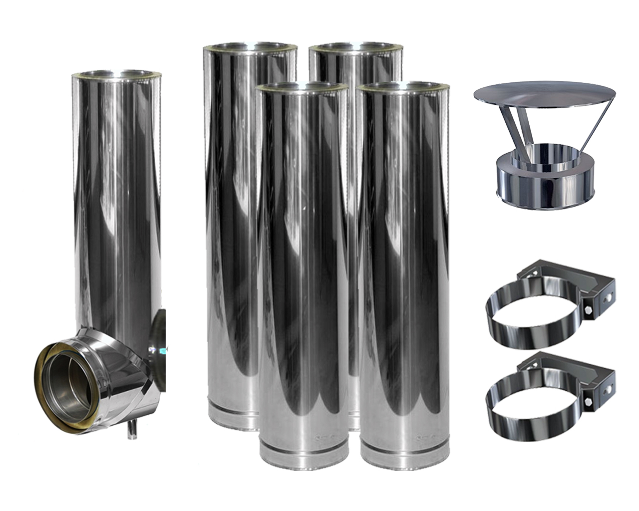 КОМПЛЕКТ ДВУСТОРОННЕГО ДЫМОХОДА, ИЗОЛИРОВАННАЯ ТРУБА 0,6 мм диаметром 130/5 м