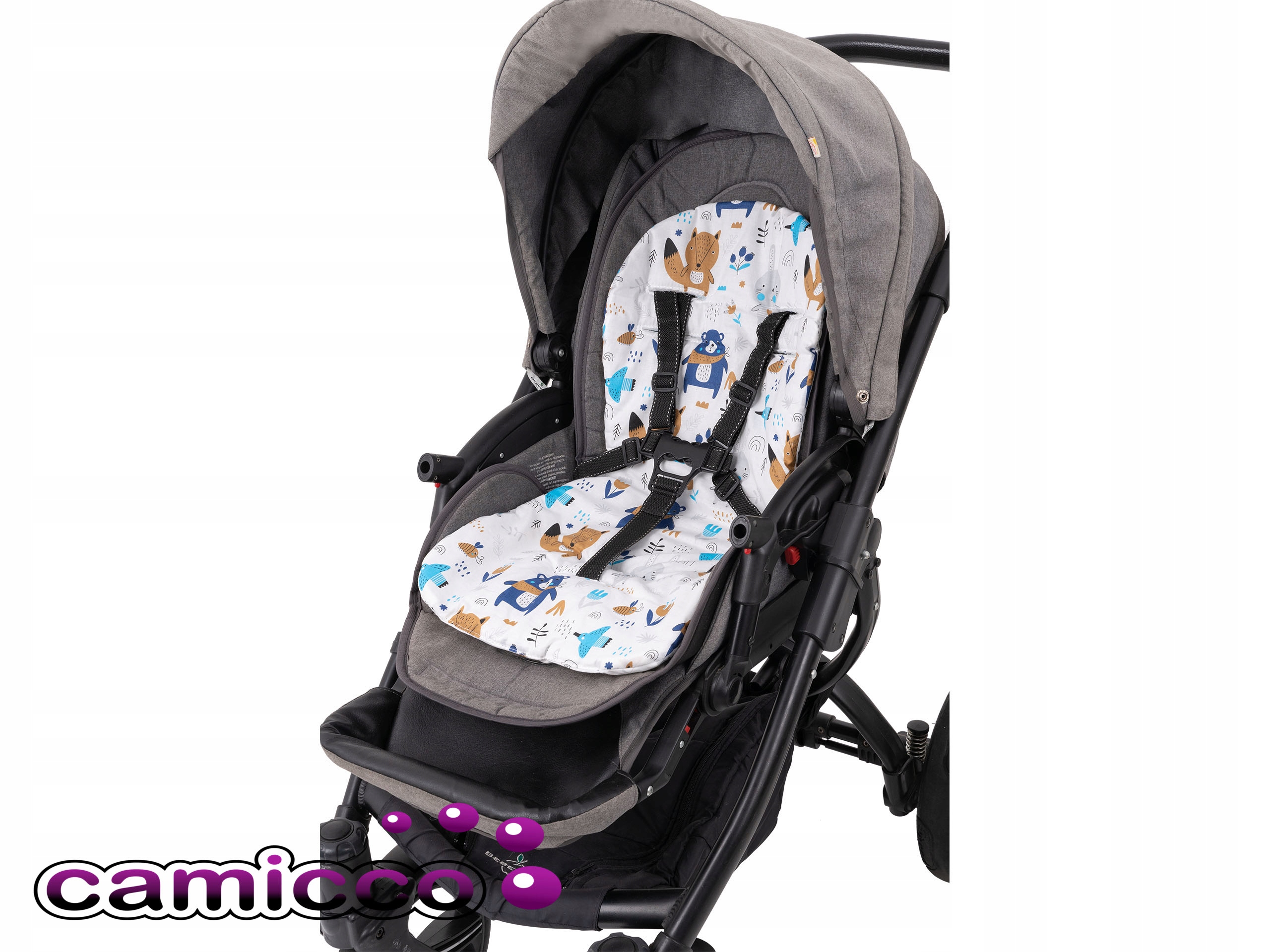 Идеально подходит для большинства колясок, доступных на рынке. Вкладыш изготовлен из 100% хлопка, что обеспечивает правильную циркуляцию воздуха между телом ребенка и коляской, в которой он сидит, внутри мягкий наполнитель