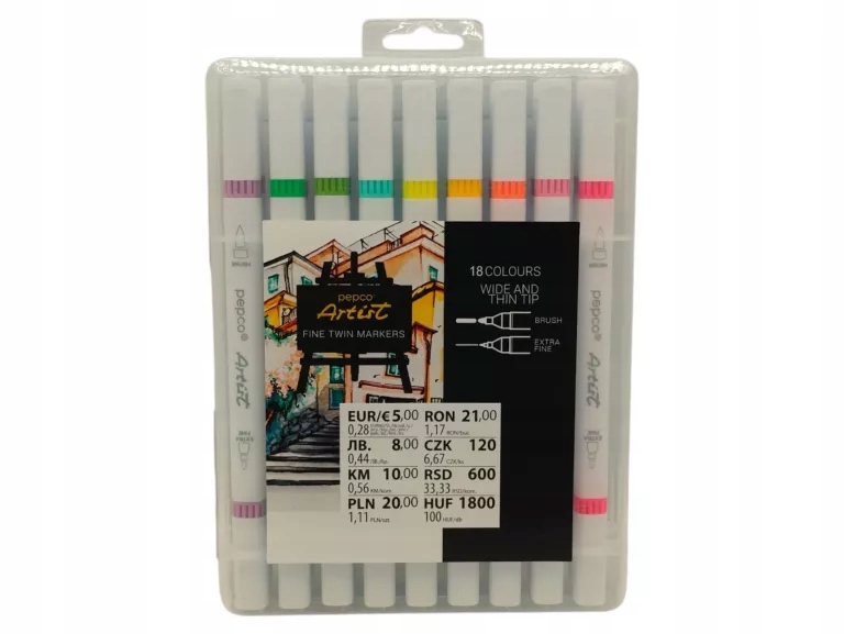 ЦВЕТНЫЕ МАРКЕРЫ ДВУХСТОРОННИЕ PEPCO ARTIST 18 ШТ.