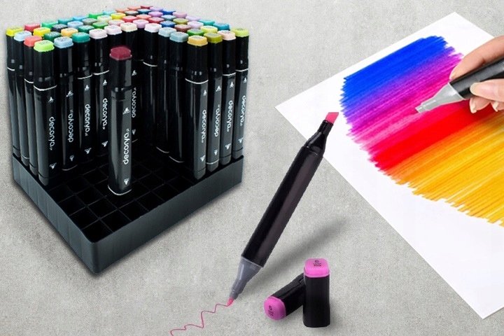 Маркеры Decorya — это маркеры самого высокого качества, с двумя разными наконечниками, изготовленными из пластика, устойчивого к истиранию, деформации и расслоению. Маркеры НЕ ПРОТЕКАЮТ, НЕ ПЯТНАЮТ, НЕ РАСПАТЫВАЮТСЯ. Благодаря чернилам на спиртовой основе даже тонкая бумага не намокнет и не порвется.