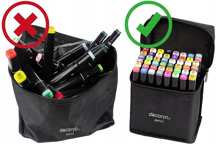 В комплекте с маркерами вы получите подходящий чехол из прочного, водонепроницаемого материала. Имеет удобную ручку, которая делает перемещение и транспортировку ручек эффективным и удобным. Кроме того, он займет мало места в шкафу. Помимо чехла вы также получите пластмассовый органайзер, который расположен в нижней части чехла. и обеспечивает стабильность маркеров и гарантирует, что каждый из них будет иметь свое место. Вы можете в любой момент снять органайзер с обложки, чтобы облегчить доступ к маркерам во время рисования.
