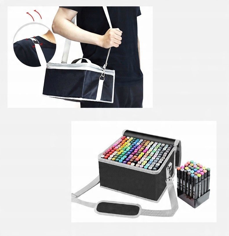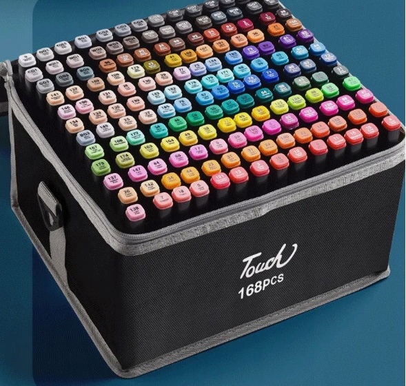 Набор двухсторонних спиртовых маркеров 168 шт + ЧЕХОЛ с регулируемым ремнем на плечо