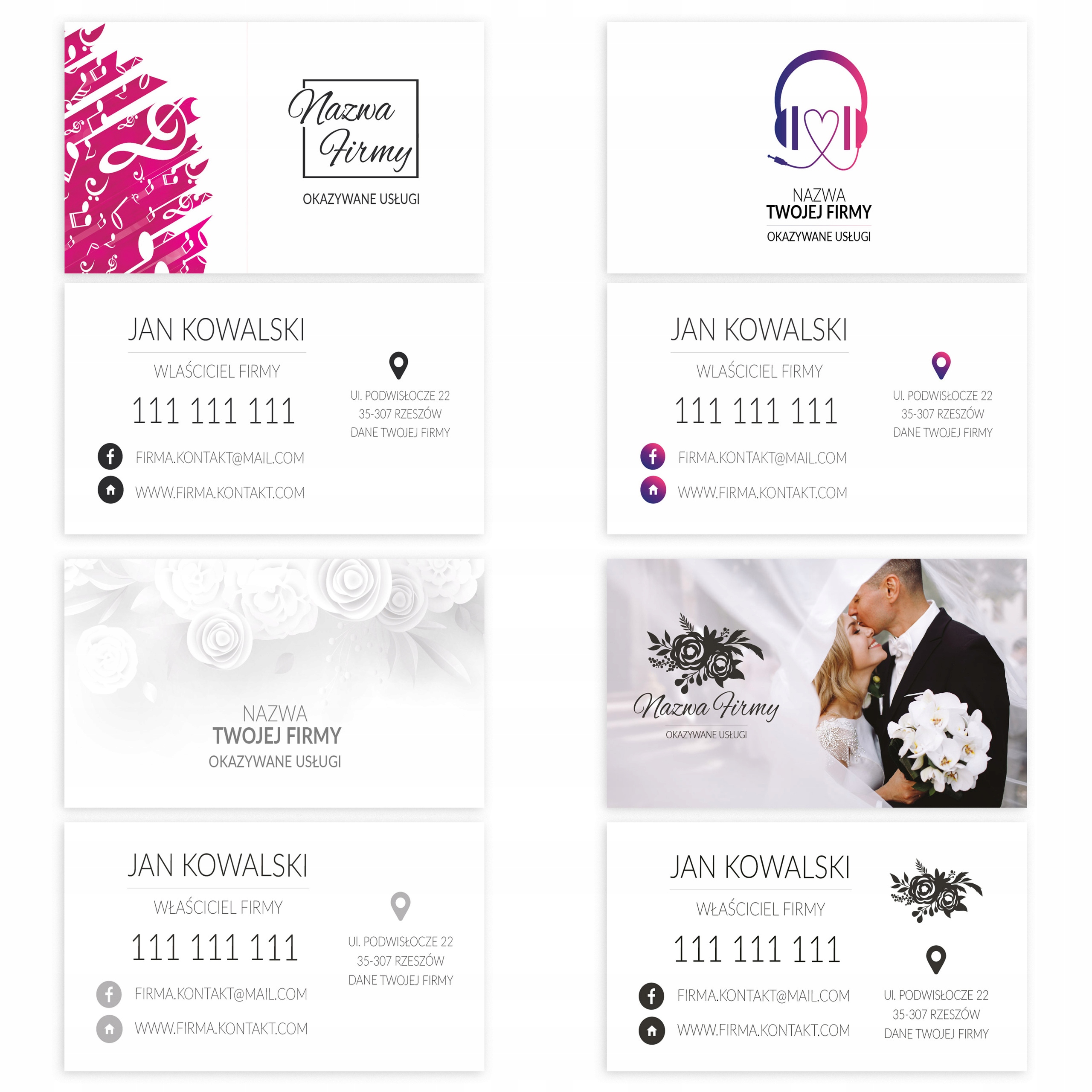 СВАДЬБА - перейдите по ссылке и увидите больше дизайнов! - https://designer.antigro.com/pl/init/drukui-card-double-side-50x90-business-card-003-350g-120szt