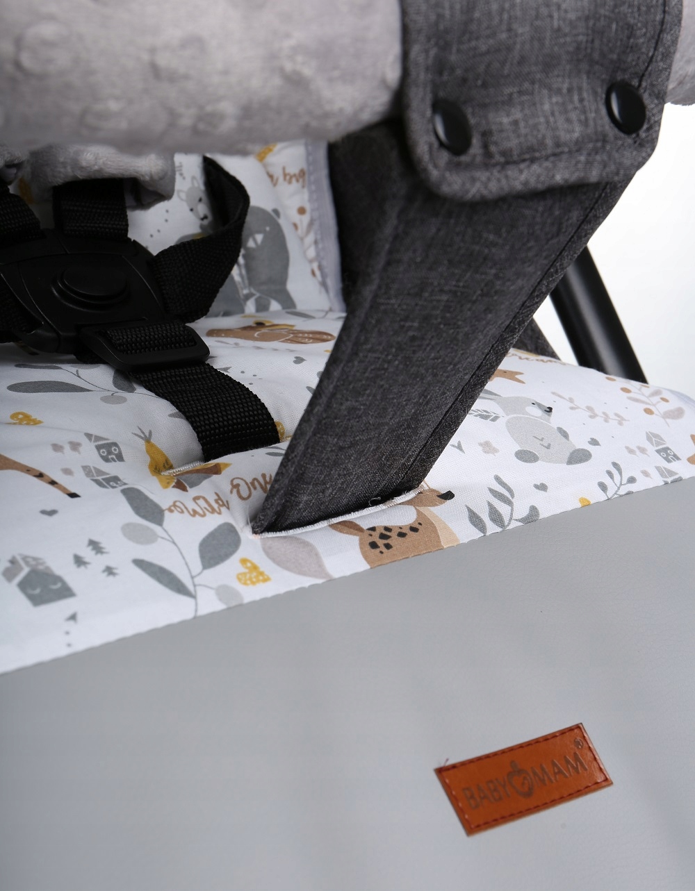 Вставка Babymam обеспечивает максимальный комфорт и безопасность b>. Благодаря используемому мягкому начинке, уменьшает удары при ходьбе на неровных поверхностях. Ваш малыш всегда сможет наслаждаться неограниченным комфортом во время прогулок, особенно во время сна. Вставка защитит обивку от грязи. Используемый дизайн придаст вашей коляске стильный вид. Его легко чистить - его можно вымыть в стиральной машине. Он имеет до 8 отверстий для ремней, , которые позволяют легко регулировать. Оба края обрезаются независимо и плотно, поэтому тщательный разрез между ними не вызывает никаких пыток