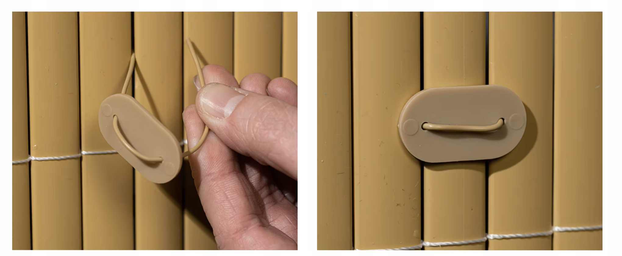 Способ соединения отдельных реек позволяет уменьшить размеры забора. Укорачивая коврик, не забудьте оставить некоторый запас и удалить несколько дополнительных планок. В результате у вас останется запас веревок, которые скрепят коврик. Сняв планки, снова завяжите верёвки!