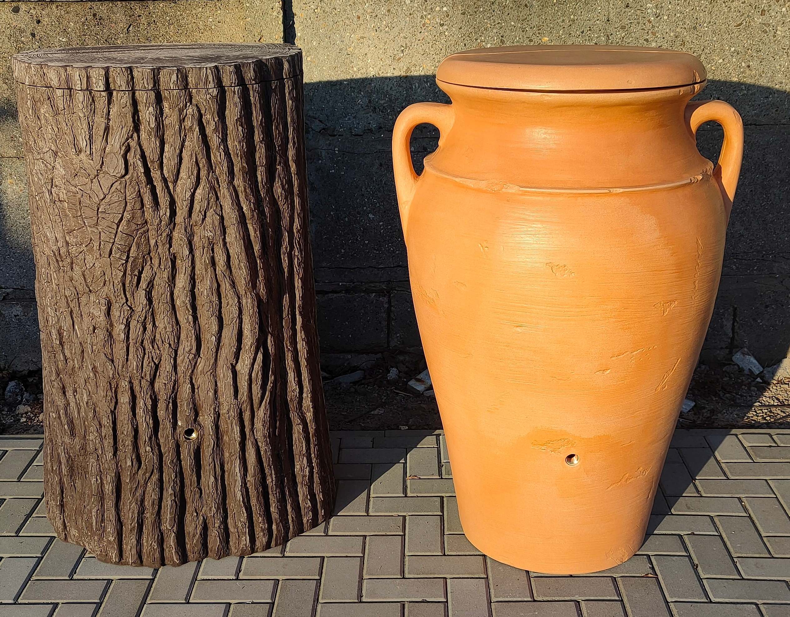 ⭐ Благодаря танку дождевой воды, вы можете представить немного Тосканы в любой сад. Эта верная копия Amphora имеет емкость 300 литров. Благодаря гармоничному, детальному дизайну и использованию собственных цветовых рецептов, каждый резервуар уникален. Другая особенность, которая отличает Amphora, - это два разных проекта, объединенных в одном бочке. Одна сторона намеренно грубая и древняя, с характерными признаками старения, другая снова филигранная и прекрасно спроектирована. В съемном покрытии защита детей была интегрирована. Обе стороны имеют резьбу для крана. Танк содержит боковую розетку для полного опустошения ствола перед морозами или для подключения двух резервуаров.