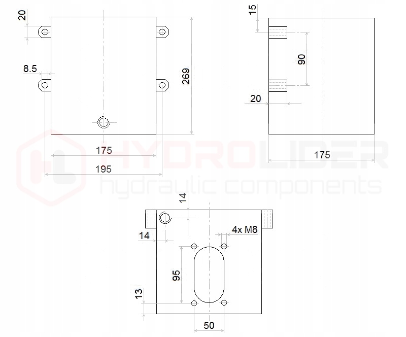Из насоса выходят два масляных патрубка (на фото два красных колпачка), позволяющие подключить привод двойного действия. Насос прекрасно работает со всеми двусторонними приводами Hydrolider из нашего предложения.