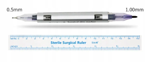 ➡️Стерильный хирургический карандаш б>, с двойным наконечником. Предназначен для маркировки выбранных мест до и во время процедур. Маркер хорошо виден на коже, а входящая в комплект гибкая линейка облегчит точное прорисовывание контуров.