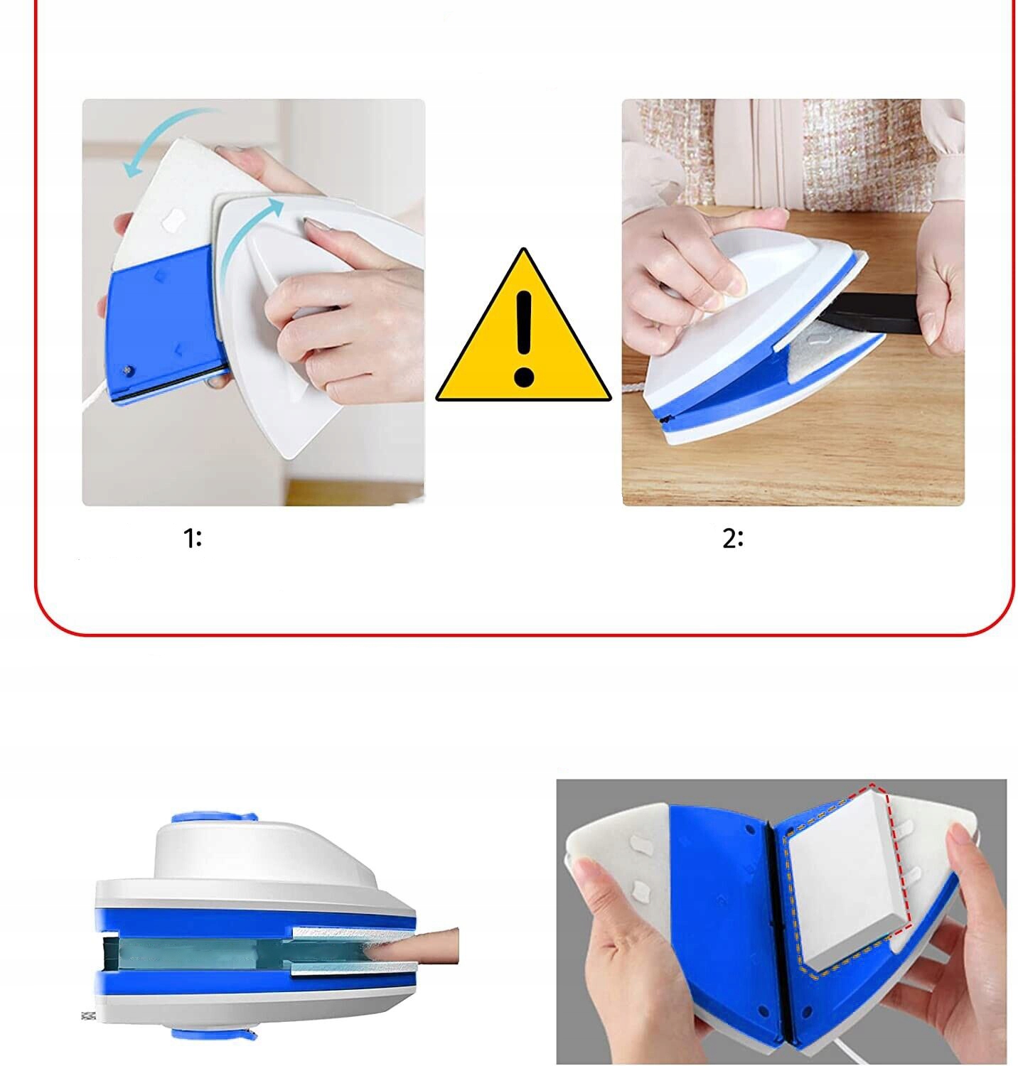 🧽🧽 【Примечание】 Используйте это Магнитный очиститель окон правильно, держите ручку очистителя окон, вы можете повернуть его на 90 °, чтобы открыть, или вы можете использовать рычаг, чтобы поддеть его, будьте осторожны с руками при открытии или закрытии. Мы оснащены магнитными изолирующими прокладками, защищающими от защемления, чтобы обеспечить безопасность каждого пользователя.