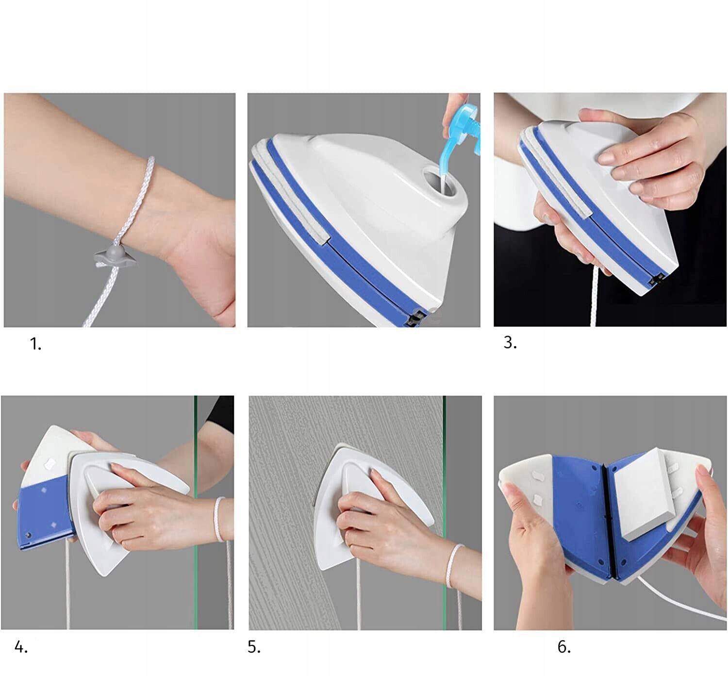 🧽🧽 【Безопасность веревка】 Наш мойщик окон оснащен веревкой, предотвращающей падение. Прежде чем мыть окно, оберните страховочную веревку вокруг запястья, чтобы оно не упало. Вы можете стоять в помещении, чтобы мыть наружные окна и сильнее вытирать стекла.