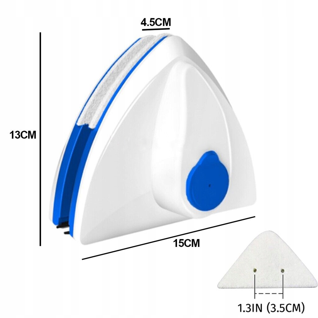 🧽🧽 【Уникальный треугольный дизайн без препятствий】 Магнитный очиститель окон Благодаря треугольной конструкции его можно протирать для сужения участков на окне, а треугольное сопротивление трению невелико, что экономит усилия при мытье окна и дезинфицирует без мертвых зон. Встроенный магнитный блок, скребок, чистящая губка, резервуар для воды. Сменная полоска стеклоочистителя, чистящая вата и фиксированная кнопка.