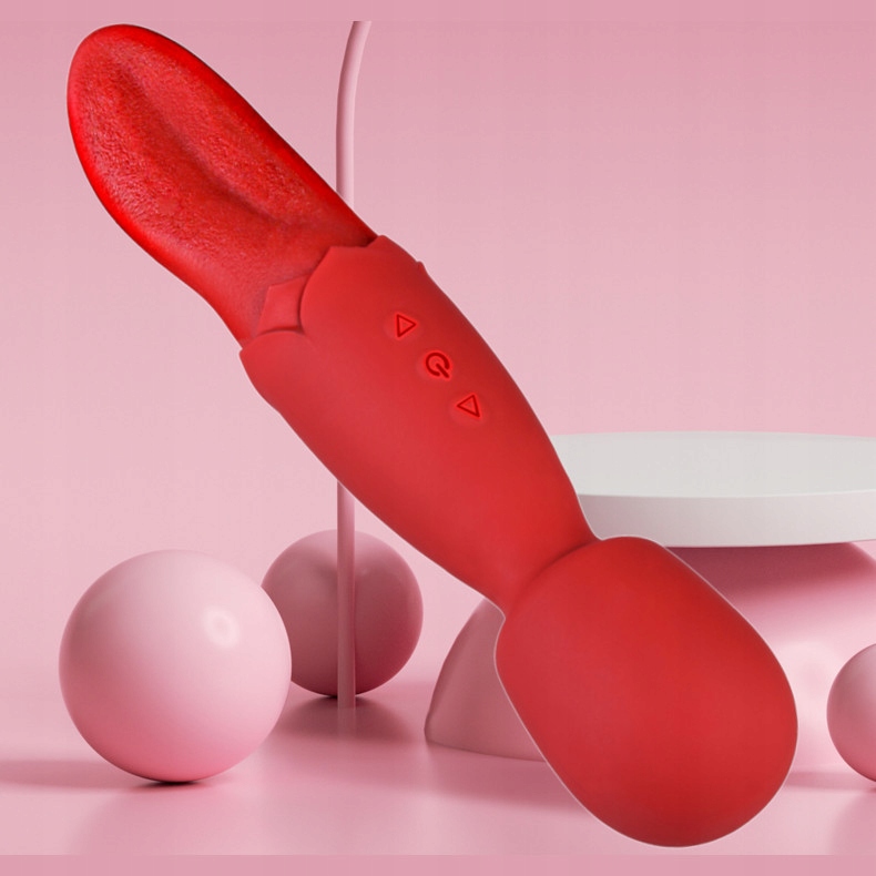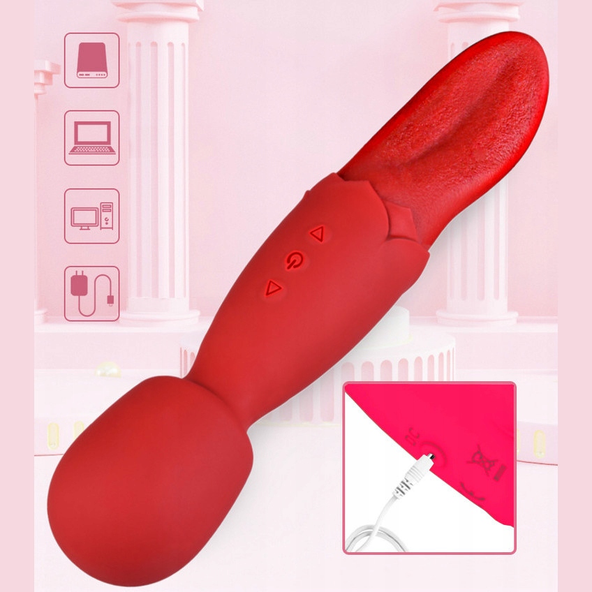 Двусторонний массажер с языком, вибратором, вагиной, стимулятором клитора