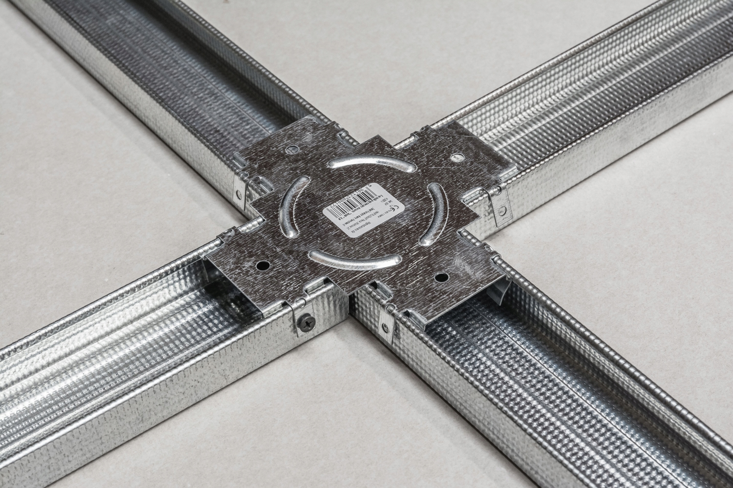Двусторонний перекрестный соединитель может использоваться при монтажных работах внутри здания в качестве элемента, соединяющего профили CD60 в конструкции подвесного потолка. Данное изделие отличается высокой прочностью и устойчивостью к коррозии, поскольку изготовлено из оцинкованной стали, что также влияет на прочность создаваемых с его помощью соединений.