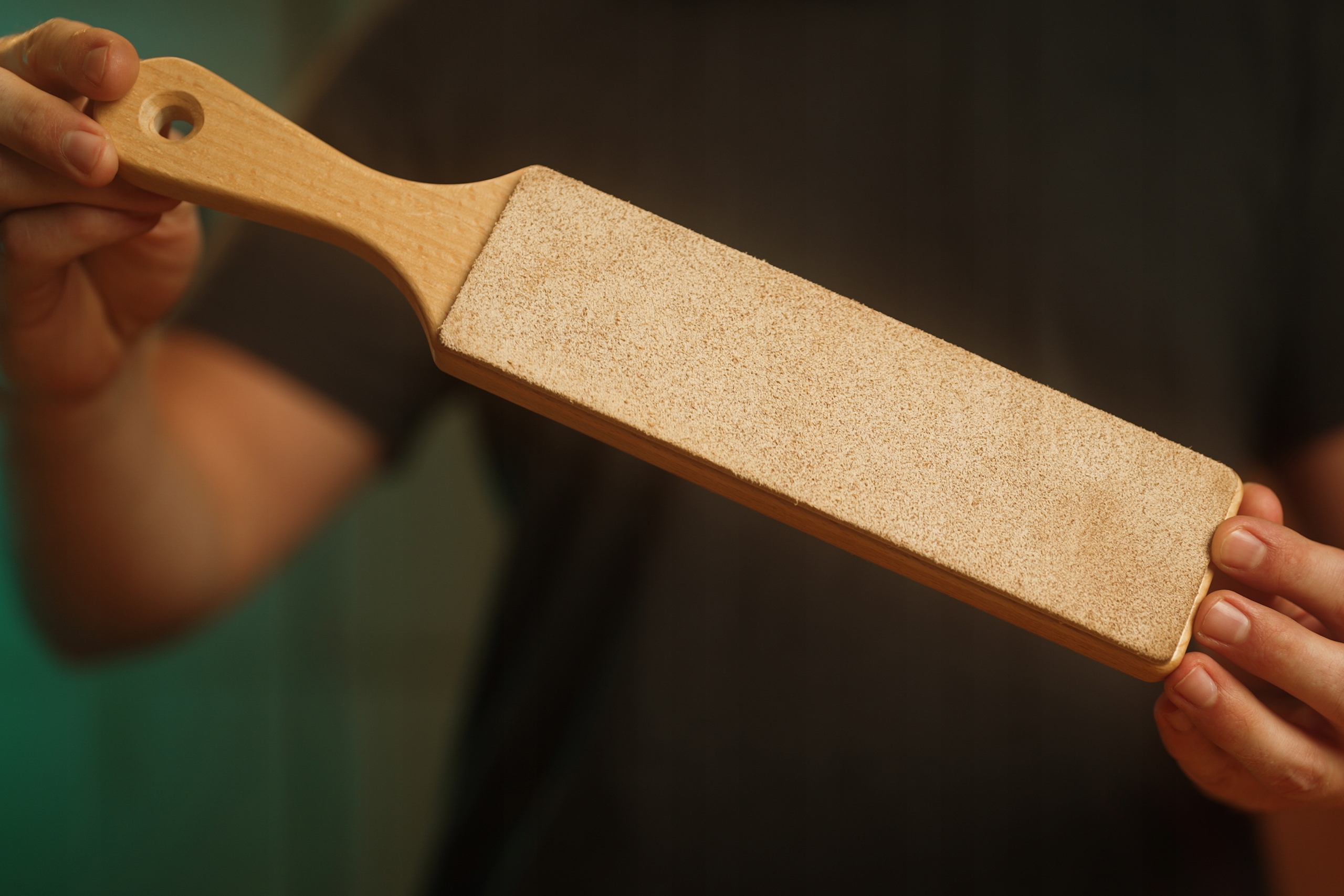Ремень имеет гладкую и шероховатую сторону, что позволяет адаптировать этот аксессуар под предпочтения пользователя. Прочная ручка обеспечивает комфорт во время работы. Потолок универсален и очень удобен в использовании. Его можно использовать для полировки как бритв, так и всех видов кухонных, охотничьих, карманных ножей, стамесок и любых других инструментов, требующих острой кромки.