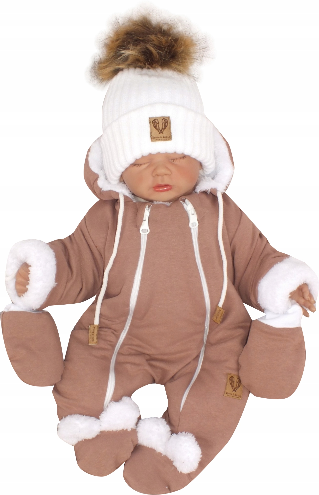 В этом варианте мы есть комбинезоны шоколадного цвета с белой подкладкой или белого цвета с шоколадной подкладкой.