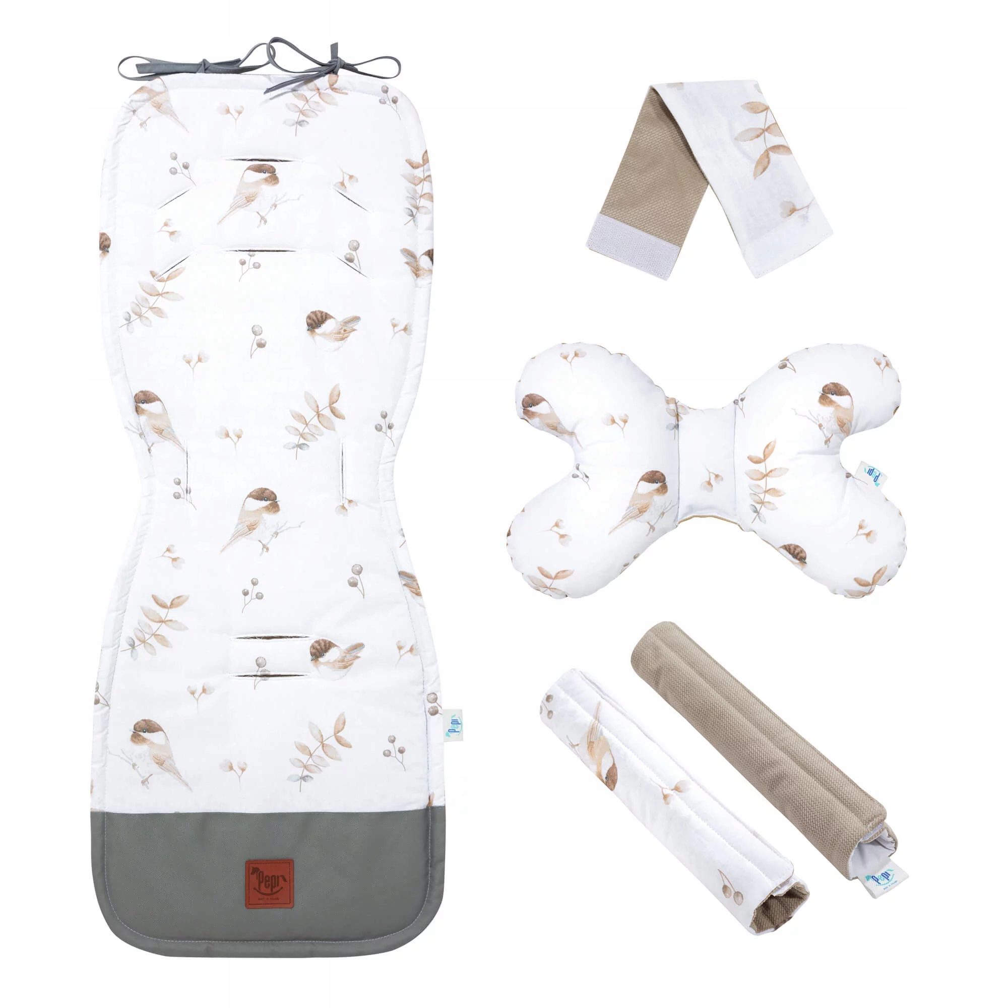 Двусторонний вкладыш для коляски Lovely Bird с бархатом - комплект из 5 предметов