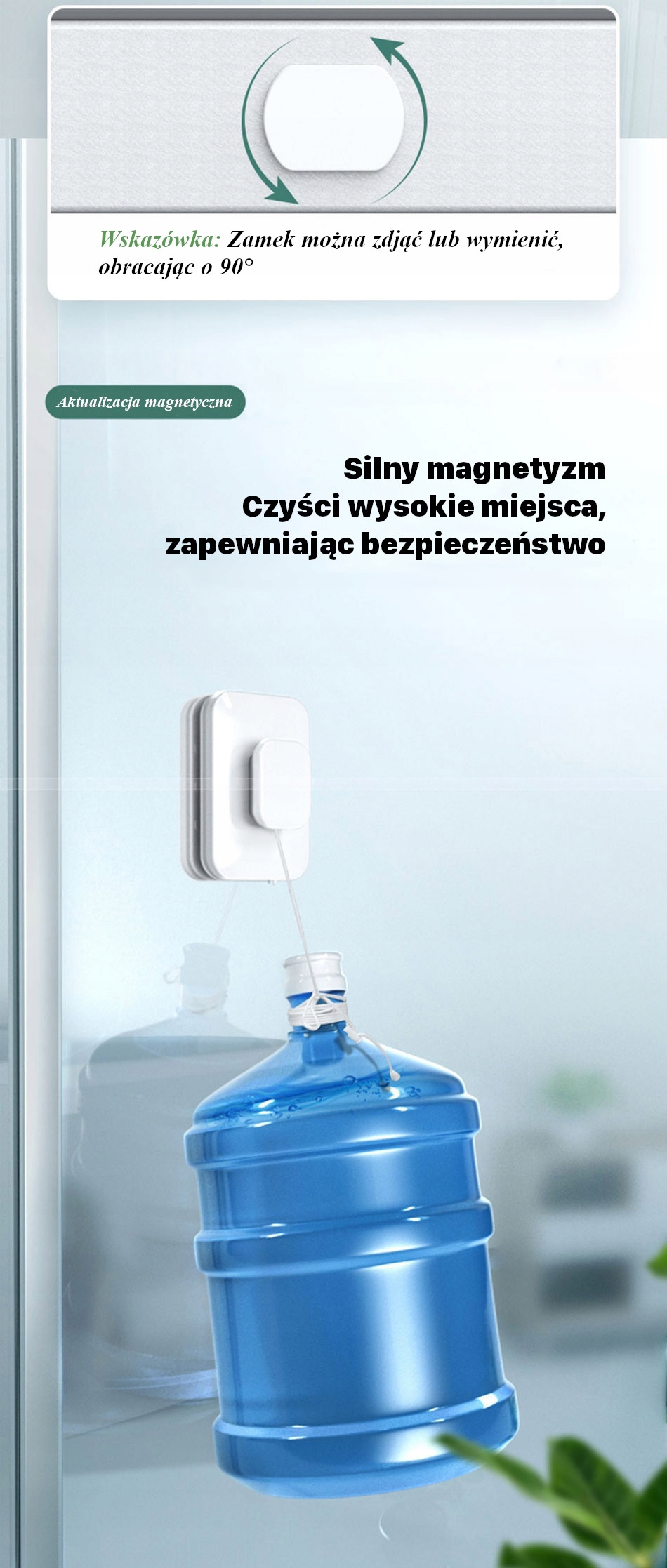 Прочная двусторонняя магнитная конструкция позволяет мыть окна, не стоя рядом с открытым окном. Встроенную губку для хранения воды можно использовать в течение длительного времени, избегая многократного долива воды.