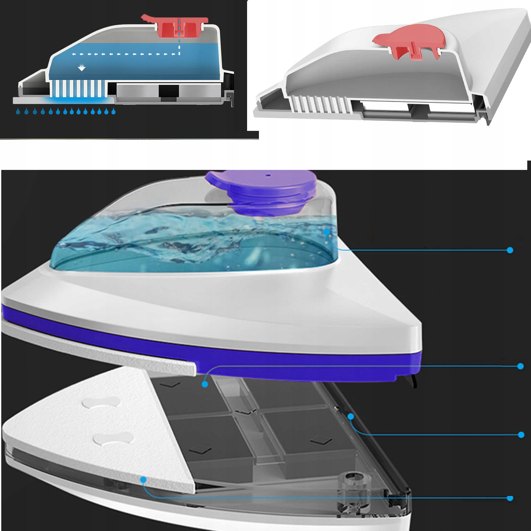 1. Благодаря функции наполнения водой вы можете чистить напрямую, не распыляя воду.