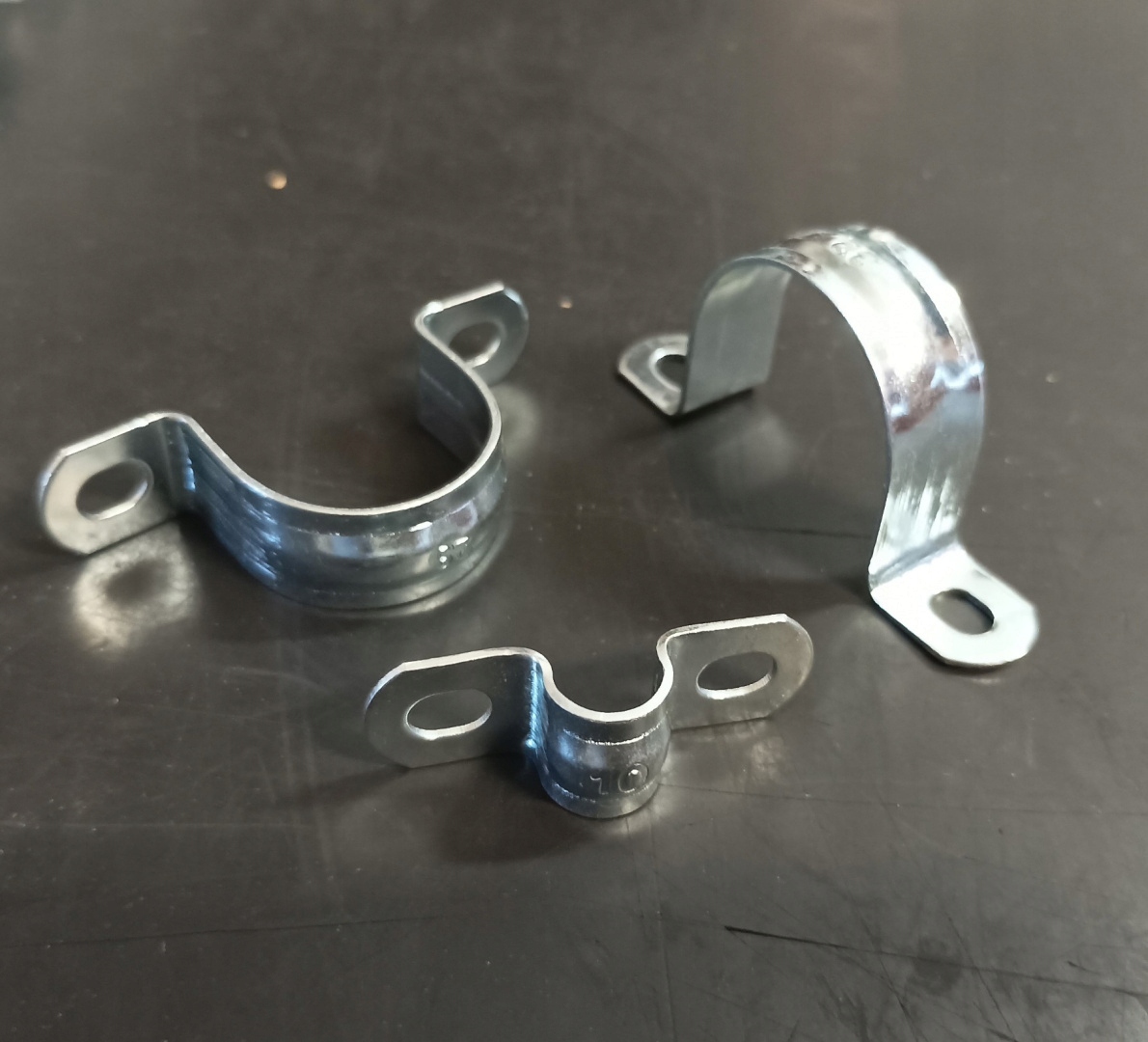 Зажим оцинкованный, поддерживающий круглые элементы, со штифтовым креплением с обеих сторон.