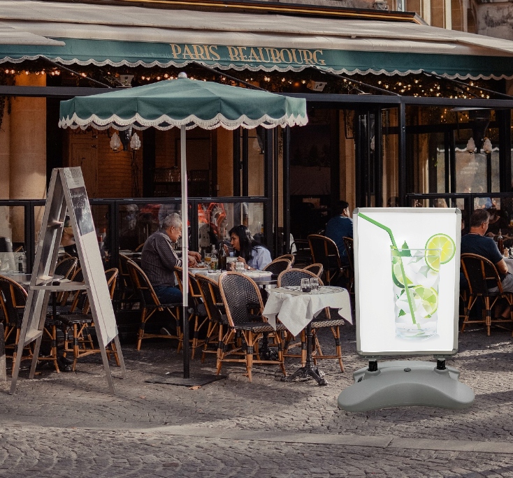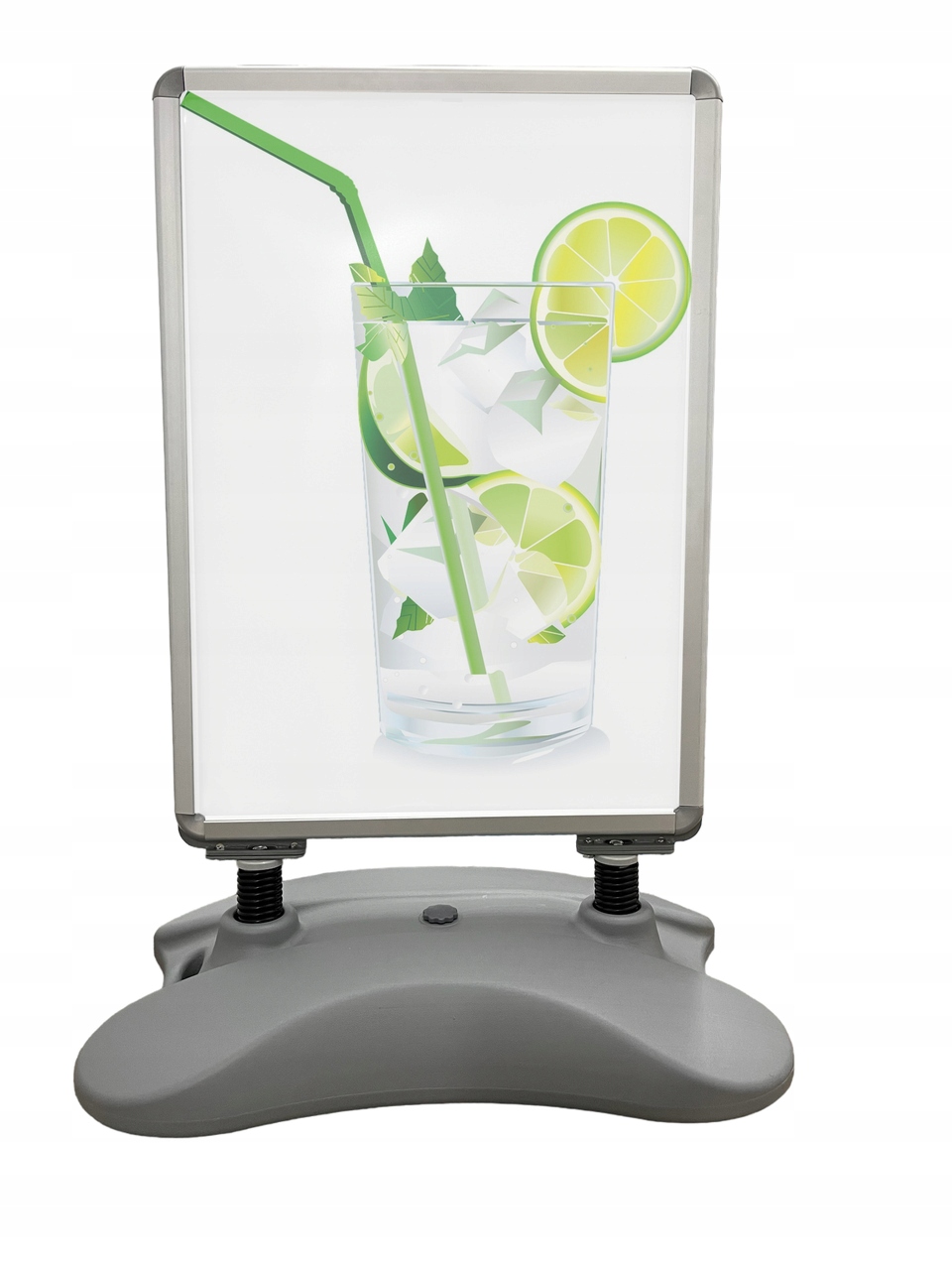 Двусторонний рекламный щит Waterbase A1 с защелкивающейся рамкой OWZ, позволяющий быстро и легко заменять графику, эстетичный и прочный, идеально подходит для использования в компаниях, на выставках, ярмарках и презентациях.