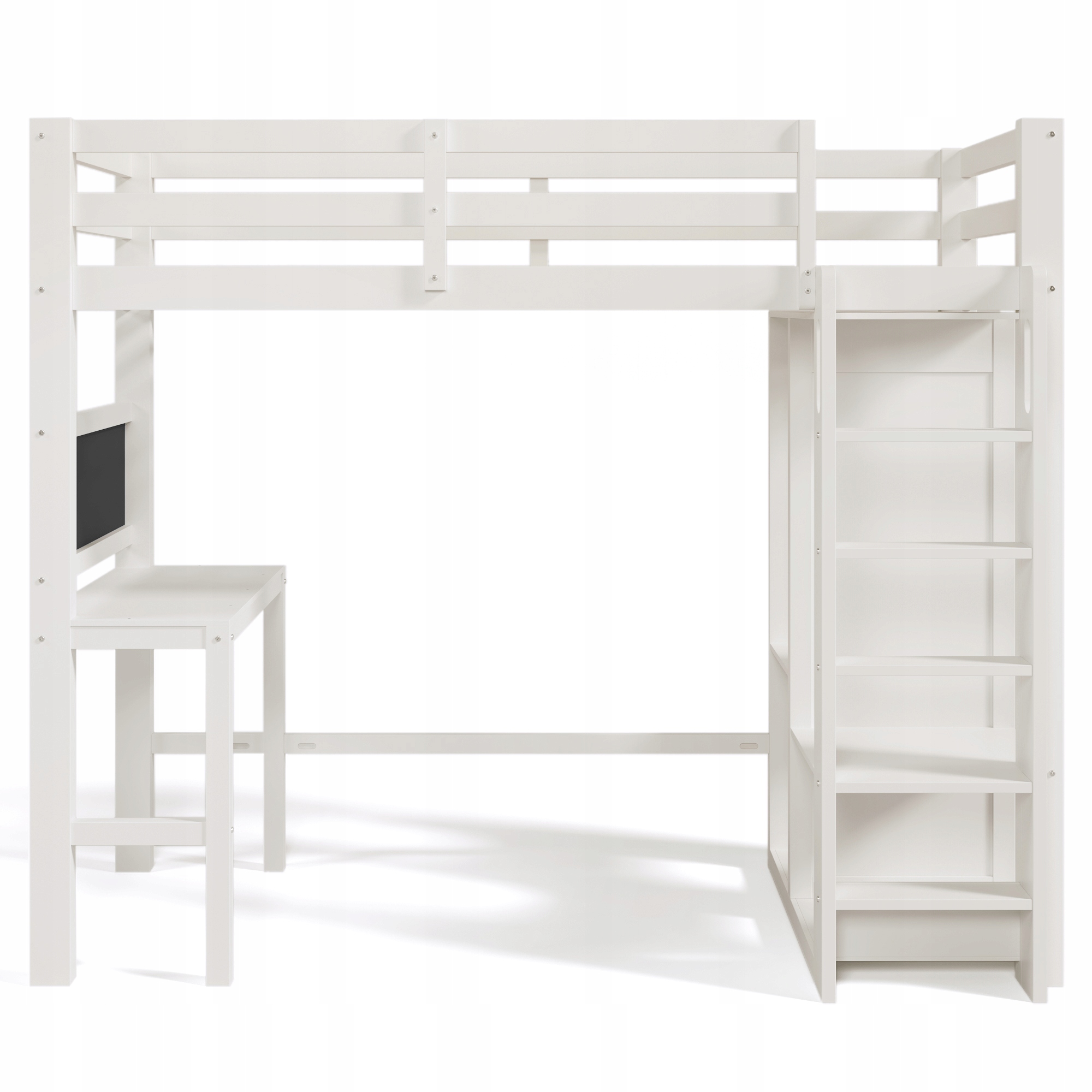 двухъярусная кровать для детей с столом, открытым гардеробом и полками, детской кроватью с рамой планок и коллапсом с падением, односменной кроватью, 90x200 см - 109x206x184 см (ширина x высота) - белый