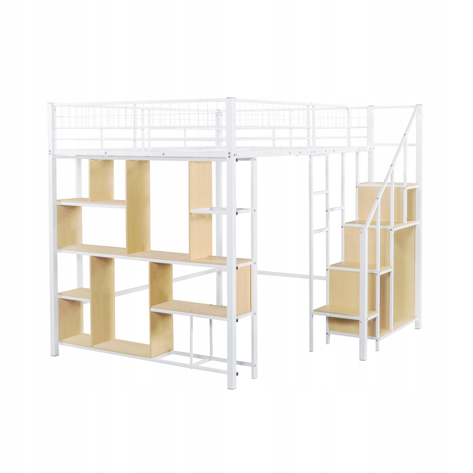 Многофункциональный кровать кровати 140 х 200 см, металлическая кровать с пространством для хранения, полки и лестницы, кровать для взрослых и кровать для детей