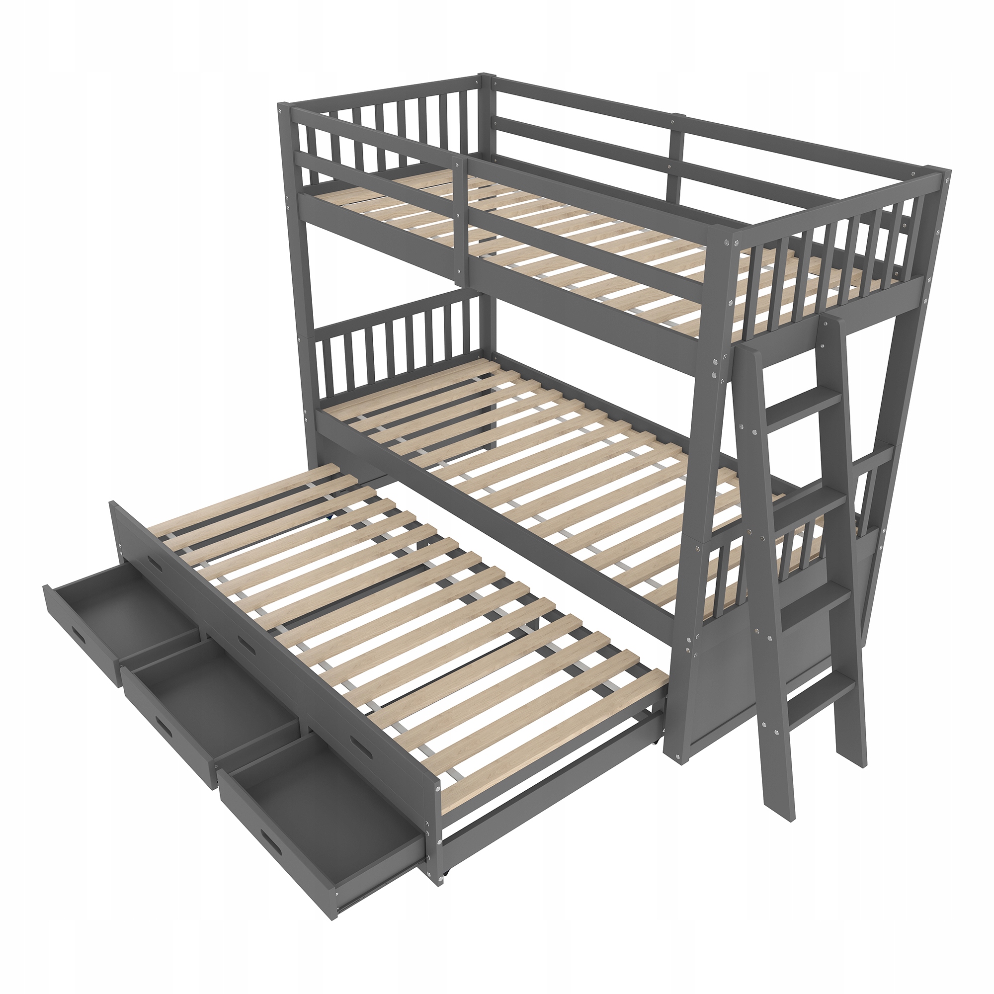 двухъярусная кровать 90x200 см, детская кровать, кровать для девочек и мальчиков, рама кровати из сосновой древесины и тарелки MDF с лестницей, выдвижной кровать и 3 ящиков, без матраса, серого цвета