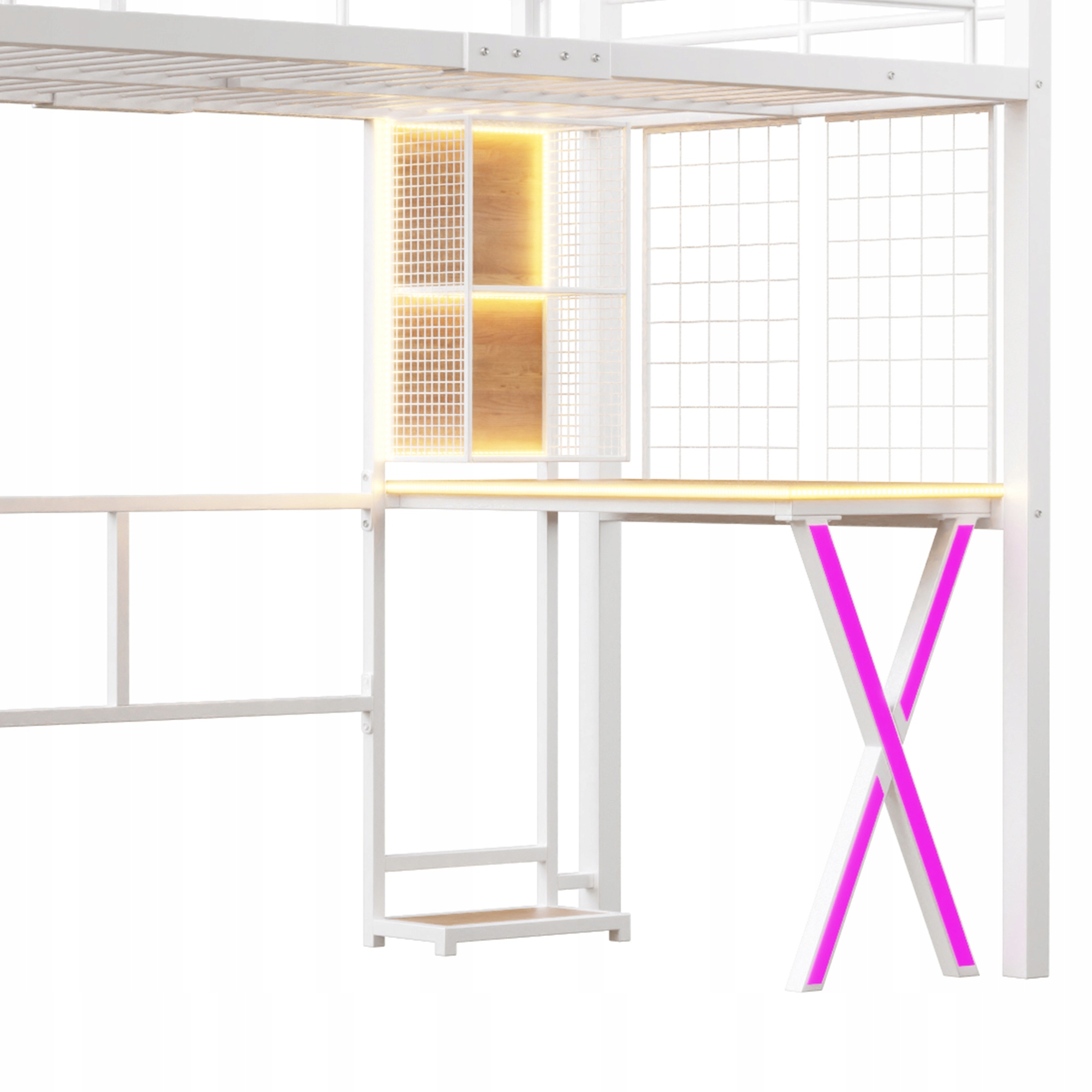 Двухъярусная кровать 90x200 Железная детская лестница, настольный гардероб, белая полка