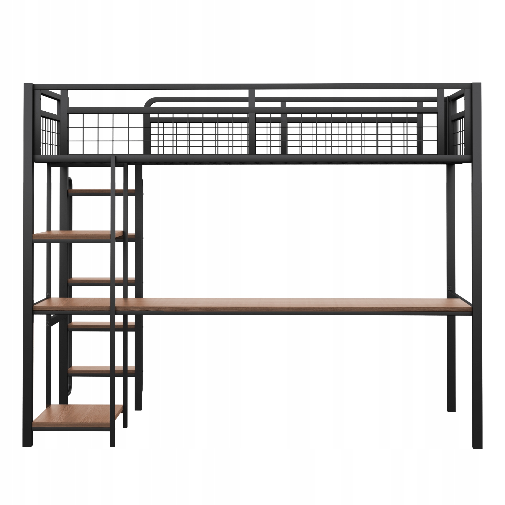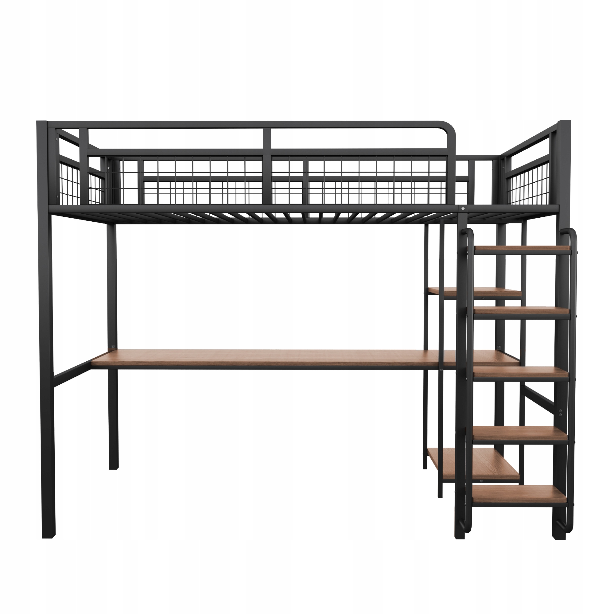 Интегрированное столовое и хранилище под кроватью - эта металлическая двухъярусная кровать была разработана со столом и полками под кроватью, что экономит пространство, обеспечивая при этом рабочее место и место для хранения. Автомобильная кровать оснащена защитным забором от металлической сетки, которая гарантирует удобный и спокойный сон.