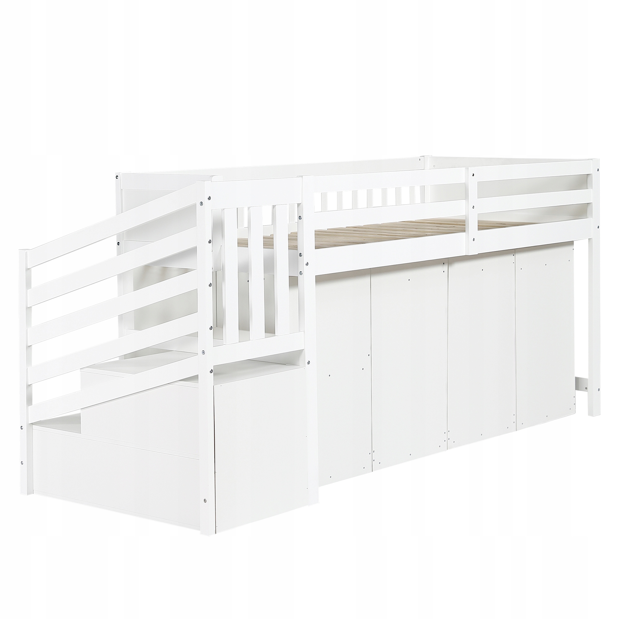 двухъярусная кровать, многофункциональная кровать, детская кровать с коллапсом падения и ступеней, с столами/шкафами/шкафами, с 2 шкафами на лестнице, сосна+MDF, белый, 90x200 см