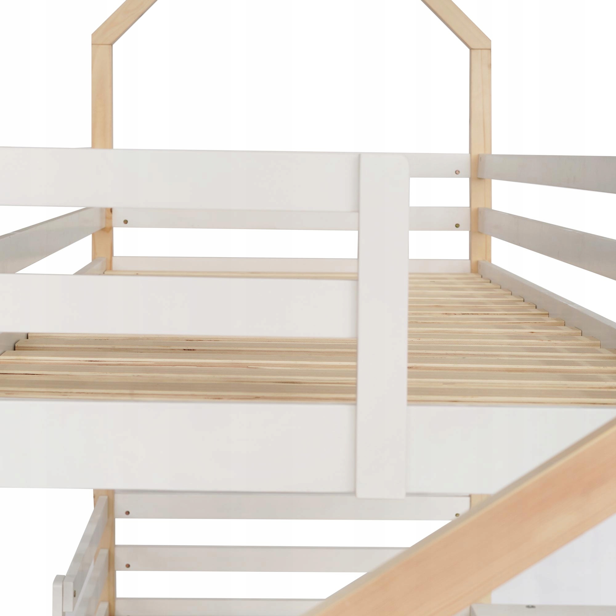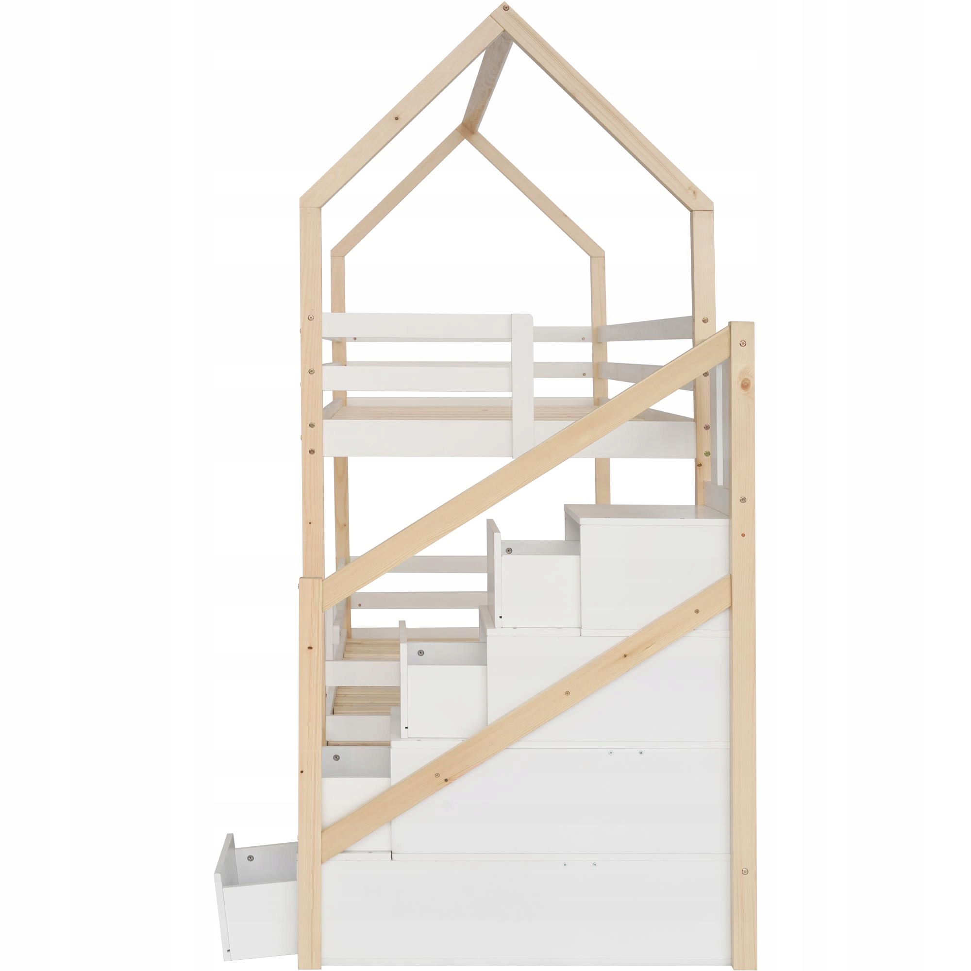 выходя из кровати, двуспальная кровать, дом в форме дома, лестничный шкаф, деревянная кровать для детей, цвет детской кровати, 90 х 200 см, без матраса, белого и дерева