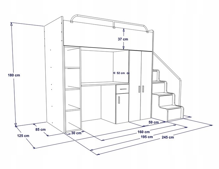 - верхняя кровать площадью спального места 80х190.