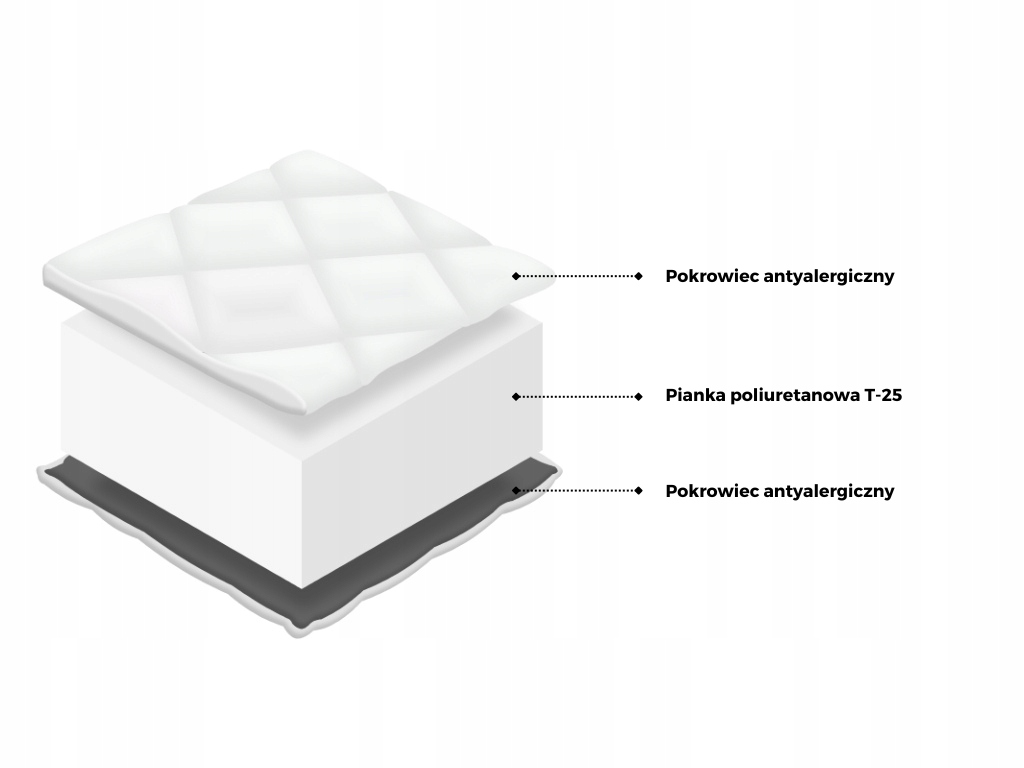 Высококачественный поролоновый матрас, изготовленный из высокоэластичного пенополиуретана HR. Благодаря своей гибкости он идеально прилегает к спящему человеку, не деформируясь, обеспечивая высокий комфорт использования. Матрас обеспечивает достаточную вентиляцию, что помогает поддерживать свежесть и устраняет потенциальные проблемы с плесенью и пылевыми клещами. Матрас соответствует всем стандартам безопасности для детей. Он не должен содержать вредных химикатов или потенциально аллергенных материалов.